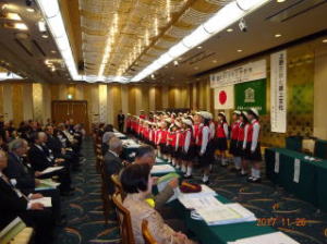 高崎市少年少女合唱団によるアトラクションから始まり、開会の後、国歌・ユネスコの歌斉唱、会長挨拶、来賓祝辞、
